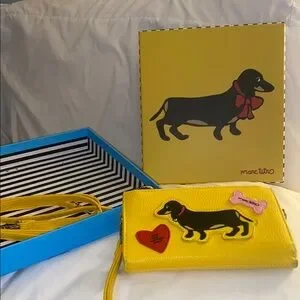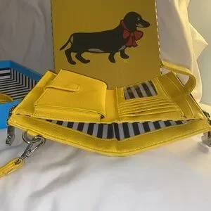 Brighten your day with the Yellow Dachshund Dog Wallet/crossbody Featuring a playful dachshund design, this wallet is perfect for dog lovers. or just ones who like whimsical design Its vibrant yellow color adds a cheerful touch to your accessories. Used twice does have a little discoloration on the end where it rubbed against my new jeans other than that it is in good condition. From a smoke-free pet free home.
