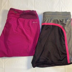 Nike Women’s Running Shorts Bundle of 2 Size Medium Dri-fit Black and Pink Lined