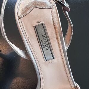 Prada Sling Back Silver Heels