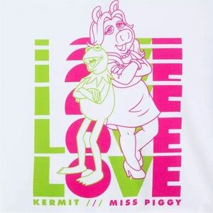 Embrace your love for classic characters with this Disney top featuring Kermit and Miss Piggy. The white and pink design adds a playful touch to your wardrobe.
