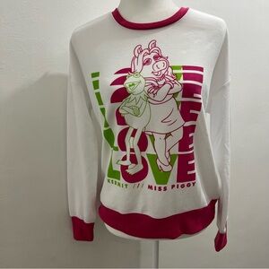 Disney Women's White and Pink Kermit & Miss Piggy Top size M EUC