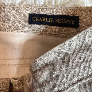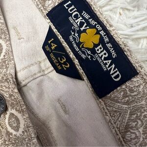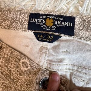 Lucky Brand Jeans Charlie Skinny Ankle Paisley Taupe White Denim Zip Size 14 /32