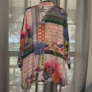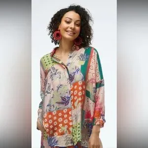 No size tag or wash instructions inside of the blouse. Length is 32 inches, according to the size chart determine it to be an XL. Hidden Placket Blouse - Oriental Blossom