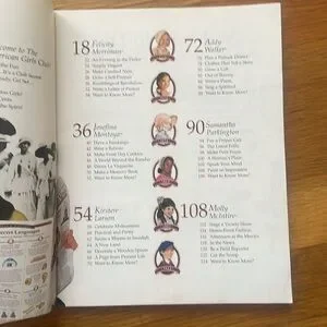 You are purchasing the American girls club handbook. Vintage out to print. Pleasant company, the American girl dolls series. Felicity Josefina, Kiersten, Addie, Samantha, and Molly. Inside you will find era recipes, crafts and a bit of history! Questions? Leave a comment below! no rips tears or stains that I can see.