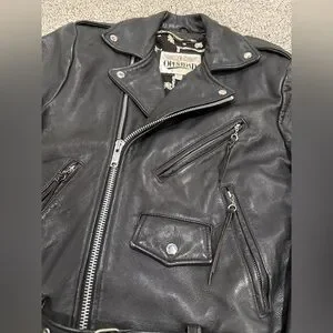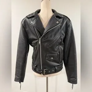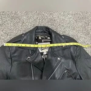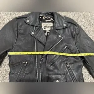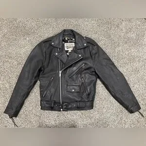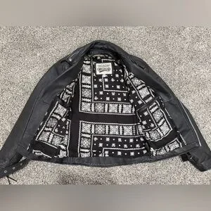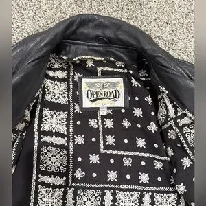 This is a preowned Open Road men's motorcycle jacket in excellent condition for its age. Size men's XS but could likely fit a women's small to medium as well (see measurements to confirm sizing). Moto style, black full zip. Very heavy and high quality. See photos for details and condition; there are some mild scratches and a little wear in spots. Comes from a dog friendly home.