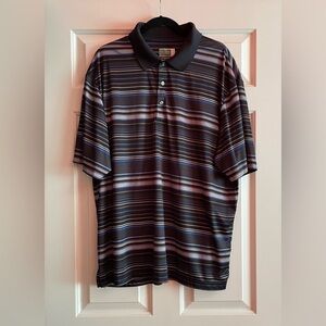 ⛳️🏌️♂️Ben Hogan Performance Golf Button up Collard Polo Shirt with Black and blue stripes. Polyester with dry wick technology! NWOT never worn! No flaws! High quality shirt! #golfwear 🏌️♂️⛳️
