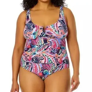 Drenched in vivid shades, with a dip at the scoop neck, this Anne Cole plus size one-piece refreshes a waterside wardrobe.