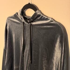 Forever 21 Gray Velvet Cropped Hoodie - Size S - Soft Luxe Pullover Sweatshirt
