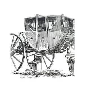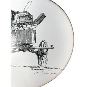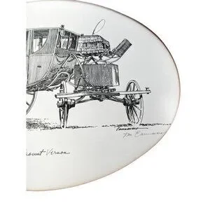 Vintage Signed Framed Lithograph of Sketch The Powel Carriage at Mount Vernon