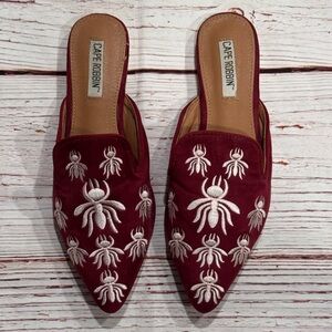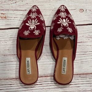 Cape Robbin Cell-18 Embroidered Mules in Wine Sz 6.5