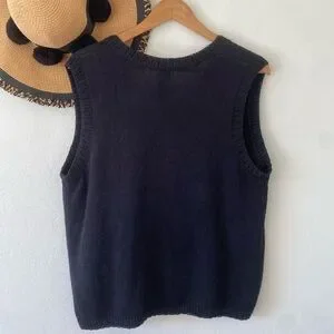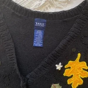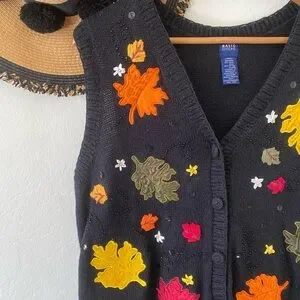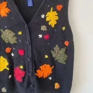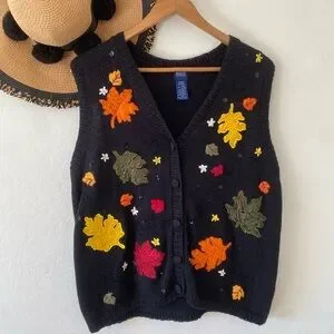 The cutest vintage Y2K black knit sweater vest with colorful fall leaf embroidery! Size large. Great preloved condition.
