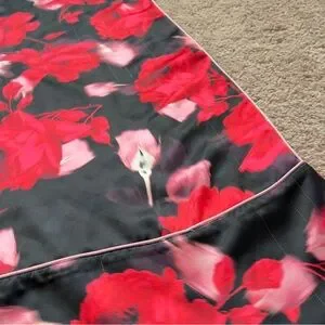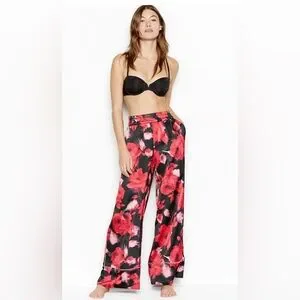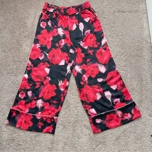 Victoria’s Secret Black Red Floral Satin Wide-Leg Pajama Pants Women’s Size XL