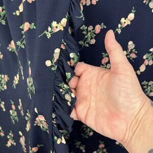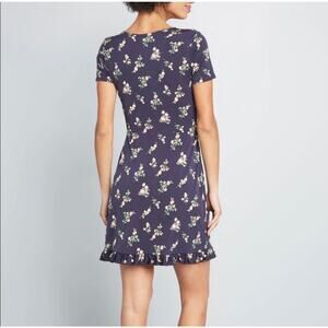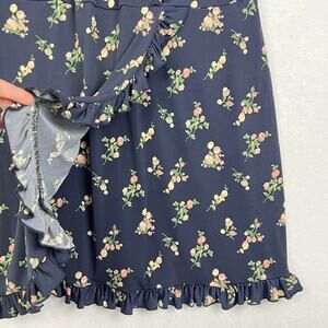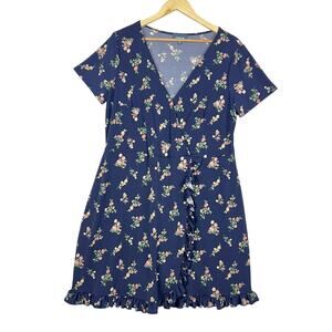 ModCloth Floral Ruffle Short Sleeve V-Neck Navy Floral Faux Wrap Womans Dress 1X
