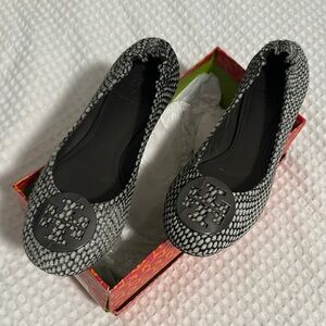Tory Burch Black and Gray Snake Print Calf Hair Women's Flats Size 9
