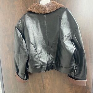 • Cropped Faux leather jacket in suede combo with detachable faux fur collar