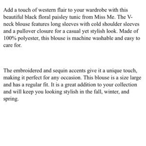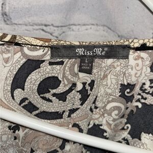 Miss Me Black Gold Floral Paisley Sequin VNeck Tunic Blouse Long Sleeve Sz Large