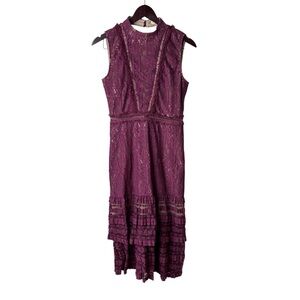 NWOT Bohme Sleeveless Lace Midi Dress In Burgundy Women’s Sz Small Wedding Guest