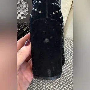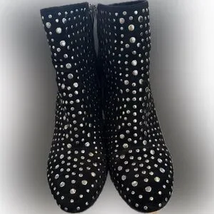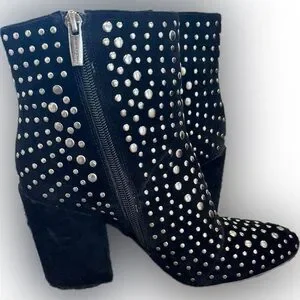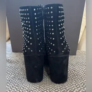 VINCE CAMUTO: DRISTA Black Suede Silver Studded Ankle Boots Block Heel Size - 9M