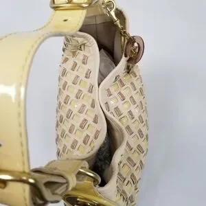 Stunning & Luxurious Coach Peyton Woven Leather Large Hobo Shoulder Bag. It is beautifully crafted with soft & supple LUXURIOUS Leather accented with GORGEOUS woven smooth patent leather with nice base details in NATURAL/IVORY color combination, Absolutely FABULOUS! Complete with Beautiful Rare Coach Charm Cluster! This is absolutely a "WOW" bag! You will be amaze by every detail of this bag, simply FABULOUS! this is SOLD OUT at coach website and coach stores, RARE & getting harder to find online. Valued over $798