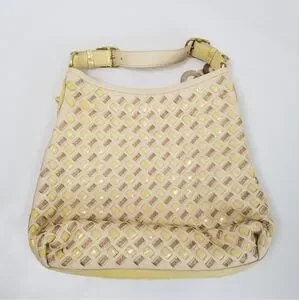 COACH LE PEYTON WOVEN LEATHER LG SHOULDER BAG Rare!