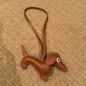 Cute bag charm! Has a 7” drop so it has an adjustable hang length perfect for all sorts of bags and uses. Dog charm is approximately 6” x 3”. Solid Tan color on both sides. Unbranded and brand new! Only taken out for photos.