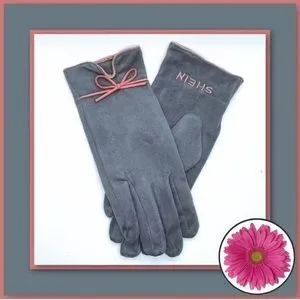 Lightweight and soft, these gloves are made of 100% polyester, with a suede- like feel. They also have a pink contrasting bow and SHEIN embroidered at the wrist.