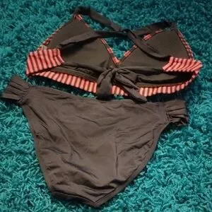 Mossimo Bathing Suit Peach and Grey! Cross back Top SIZE MEDIUM. Solid Grey Bottoms SIZE LARGE! Let's get summer ready!