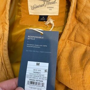 Universal Thread Corduroy Quilted Mustard Jacket. Brand new with tags. Has pockets. Size medium. Chest measures about 21”, waist uncinched 21”, hip 22.25”, length 26.25”, sleeve length 25.5”