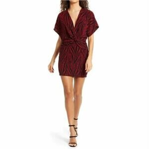 Saylor Soumin Metallic Ruby Red Black Zebra Jacquard Mini Dress Women's Size M
