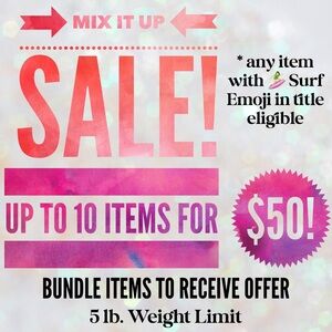 ❗️ Don’t miss out on my Mix and Match Sale! Like or bundle up to 10 qualifying items for $50 (5 lb. weight limit)! Just look for 🏄🏻♀️ in titles for qualifying items.