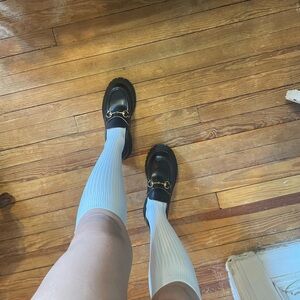 Authentic GUCCI Women's Lug Sole Horsebit Loafers Black Leather Gold hardware