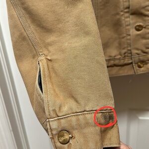 One stain on right sleeve cuff (see picture)