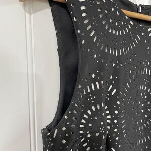 White House Black Market Dress 8 Black Cut Outs Over White Sheath Knee Length
