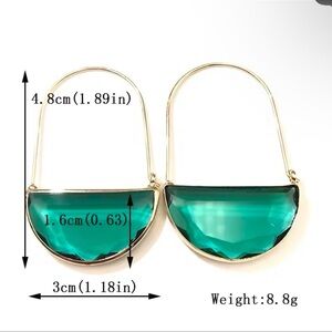 Elegant gold earrings with vibrant green accents. Perfect for any occasion.