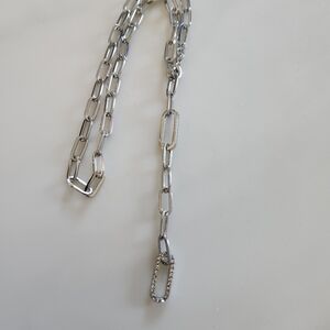 This elegant silver chain necklace adds a touch of sophistication to any outfit. Perfect for any occasion.