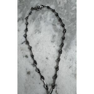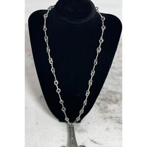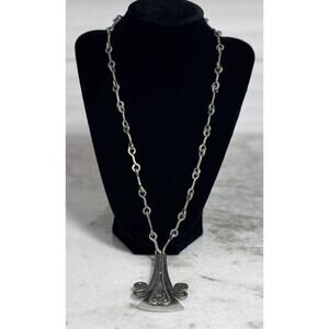 Vintage MCM Denmark Lysgard Pewter Long Brutalist Pendant Necklace 21in