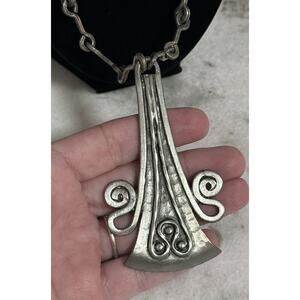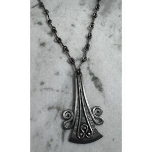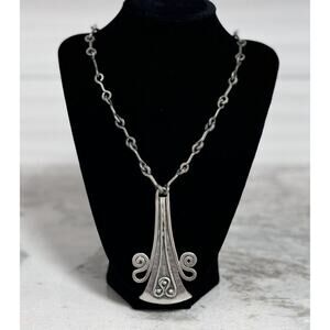 Vintage MCM Denmark Lysgard signed pewter long brutalist necklace. Necklace measures 21 inches long. Pendant measures just over 3.25 inches long by 2 inches wide. Beautiful unique piece. Very well cared for. (#980)