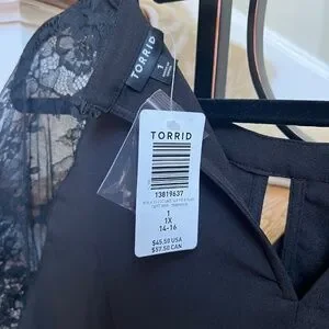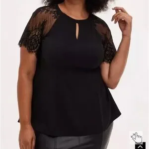 NWT Torrid Plus Size Black Crepe Lace Fit and Flare Top