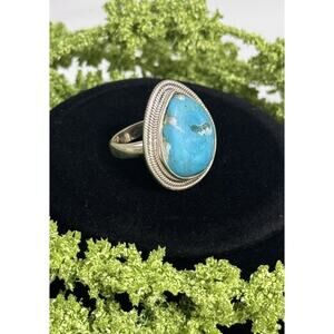 Sterling Silver Native American Pear Chunky Turquoise Ring Size 8 #895