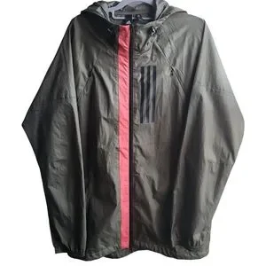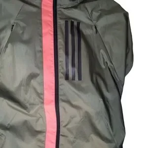 Keywords: Adidas, windbreaker, jacket, men's, green, lightweight, water-resistant, adjustable, hood, pockets, sporty, casual