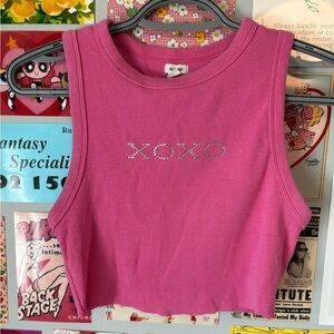Y2K Bedazzled XOXO Pink Sleeveless Cropped Tank Top