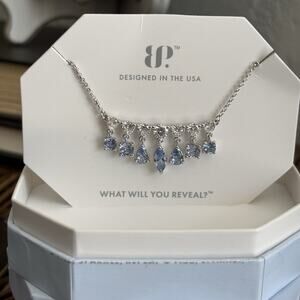 Bomb Party Necklace NK20825 “A Delicate Moment” Aquamarine CZ On Rhodium Silver