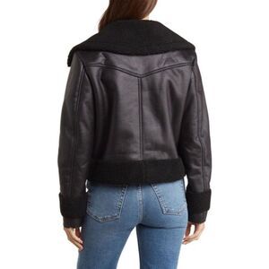 DKNY Women's Black Faux Suede Sherpa Lined Moto Jacket Size 1X