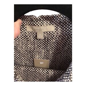This Joan Vass set is crafted in a sophisticated blend of black and tan. The design offers a versatile look, perfect for both casual and formal occasions.