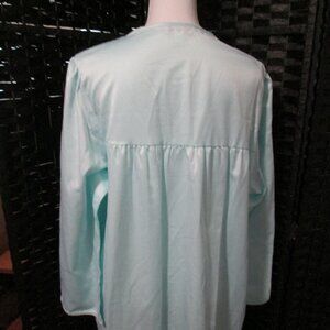 Miss Elaine Embroidered Lace Smocked Yoke Long Sleeve Turquoise NWT Sz XL