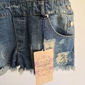 NWT Highway Jeans Distressed Denim Shot Overalls Size L Blue
