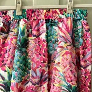 Good used condition. Waist is elastic at the back and flat at the front. Has pockets!