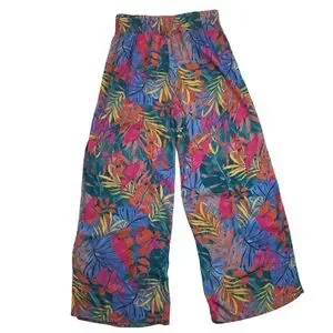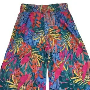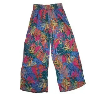 Kona Sol Tropical Floral Wide Leg Lightweight Rayon Pant Multicolor