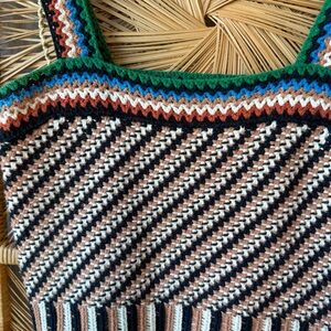 Veronica Beard Livinia Crochet Knit Cotton Sweater Tank Crop Top Multicolor SZ S