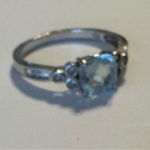 Elegant 10k white gold Aquamarine diamond Ring sz 7